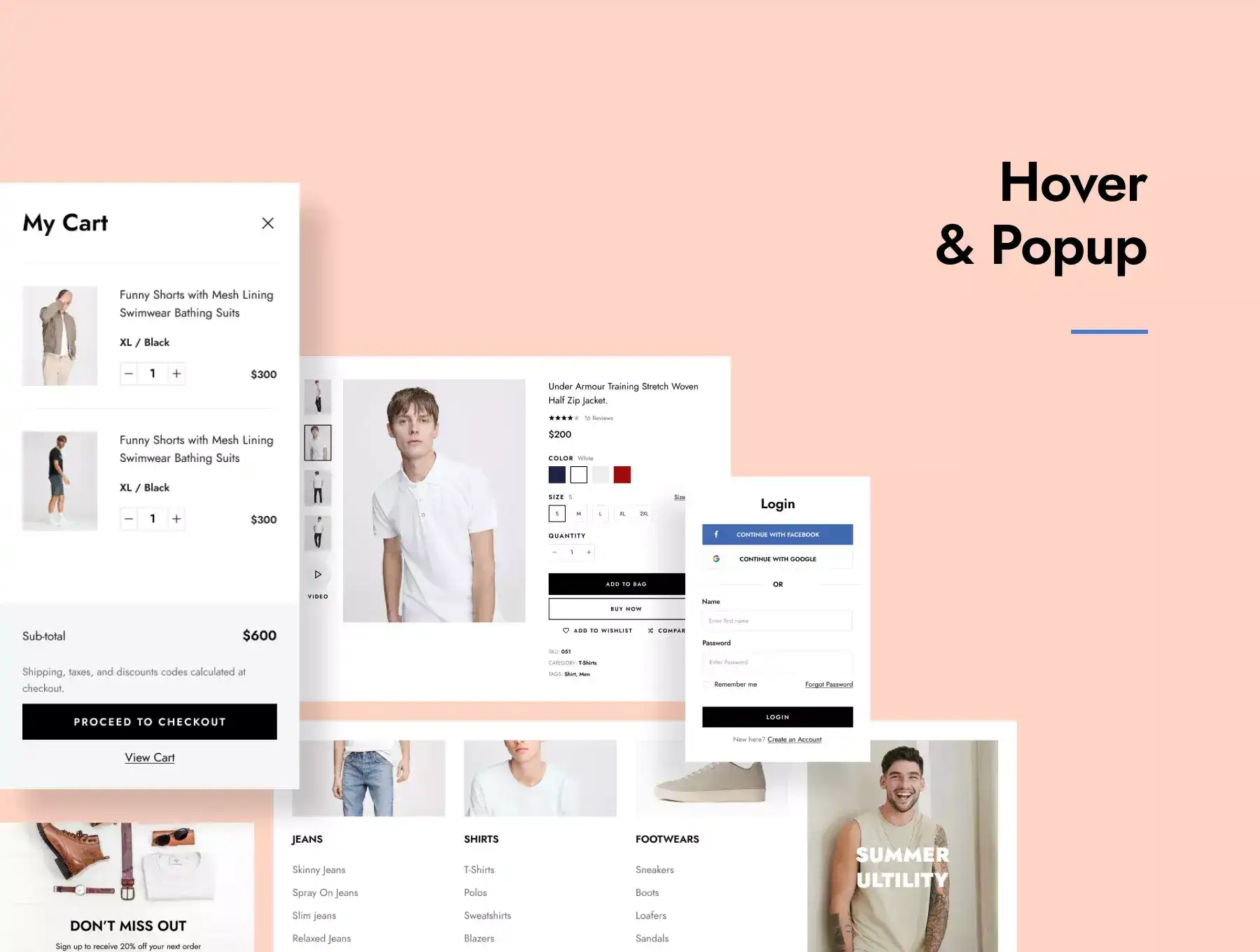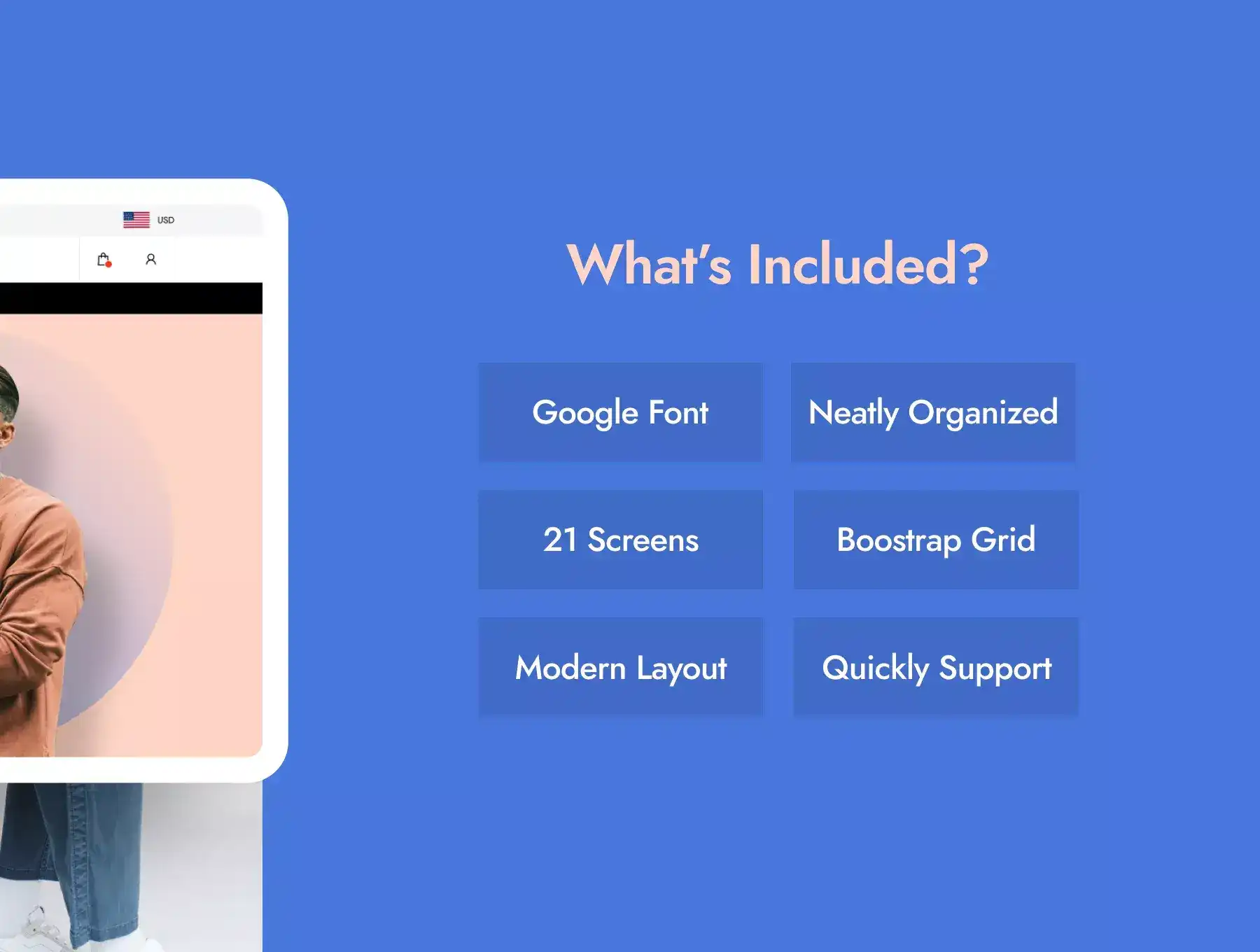 Home page, Categories, Products, Shopping Cart, Wishlist, Checkout, Sign Up, Login, FAQ, Order Tracking, Contact, Careers, About, Blog, Single Blog, 404 Page, Coming Soon.