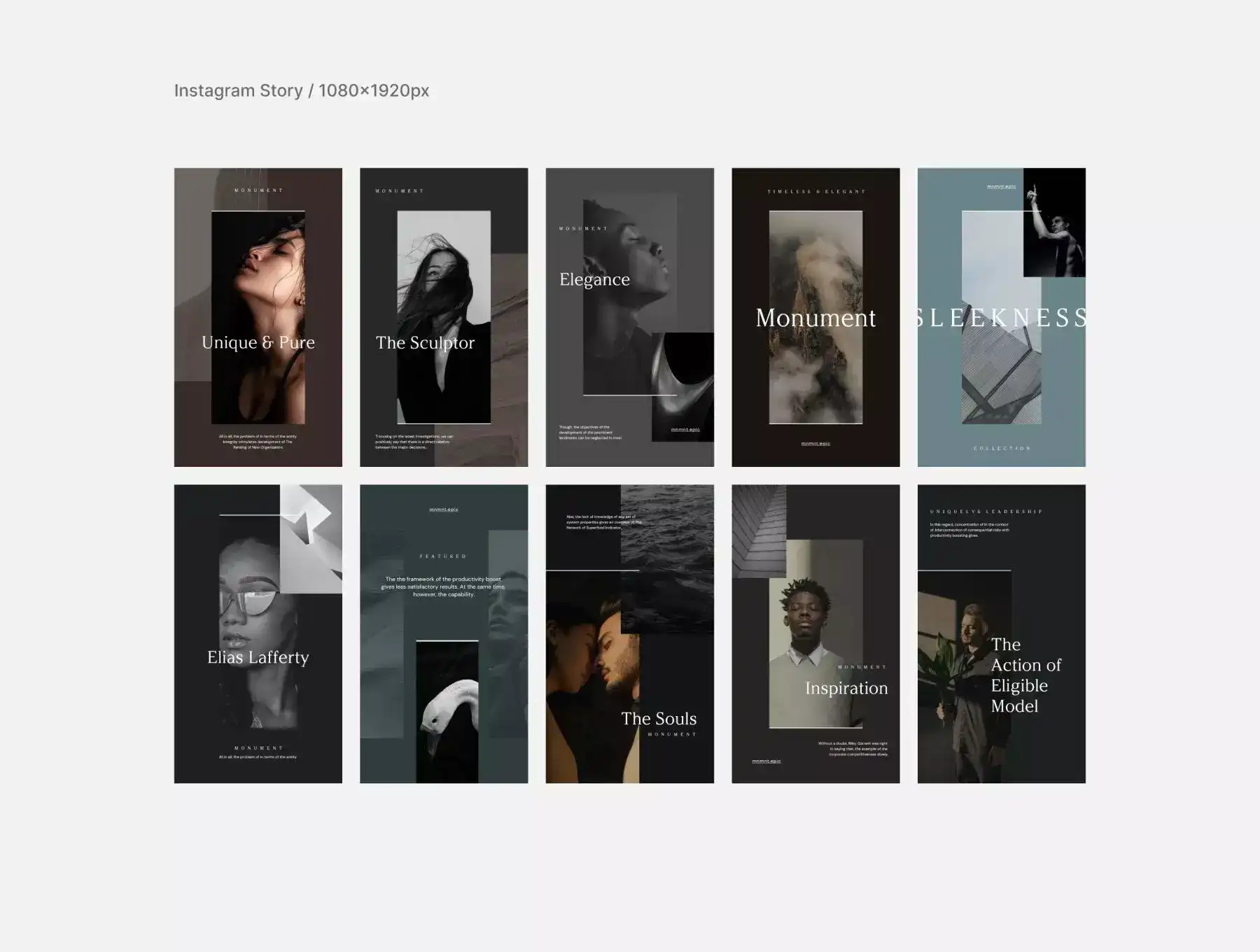 Be unique among the quantity of similar looks. Determine the style and do not be afraid to be different. The package contains a layout in two dimensions for Instagram Stories and a classic post square for any other social networks. If you need any different layout dimension let us know.