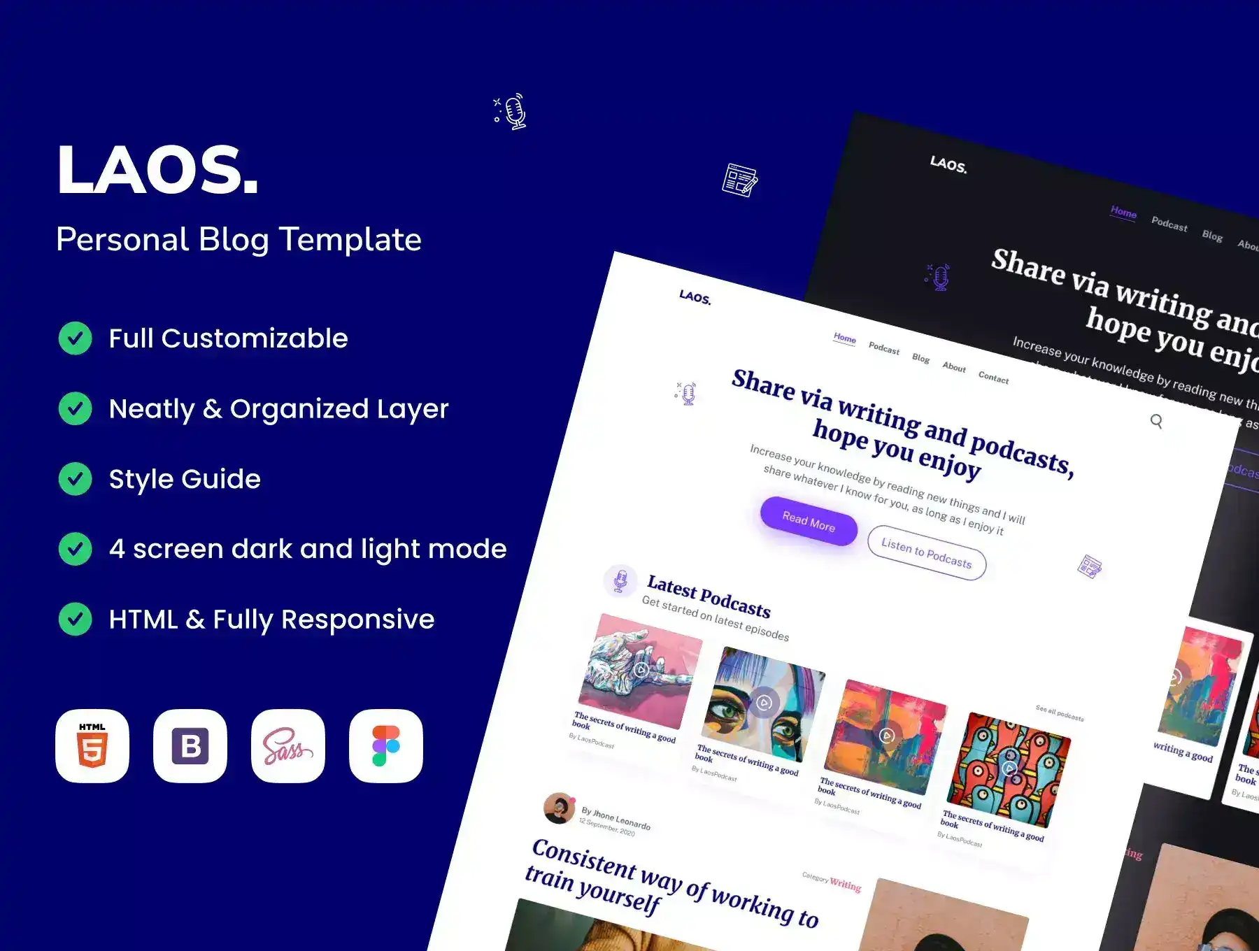 laos is a personal blog that will help you to have your dream blog website, of course with a contemporary design and has dark and light modes.