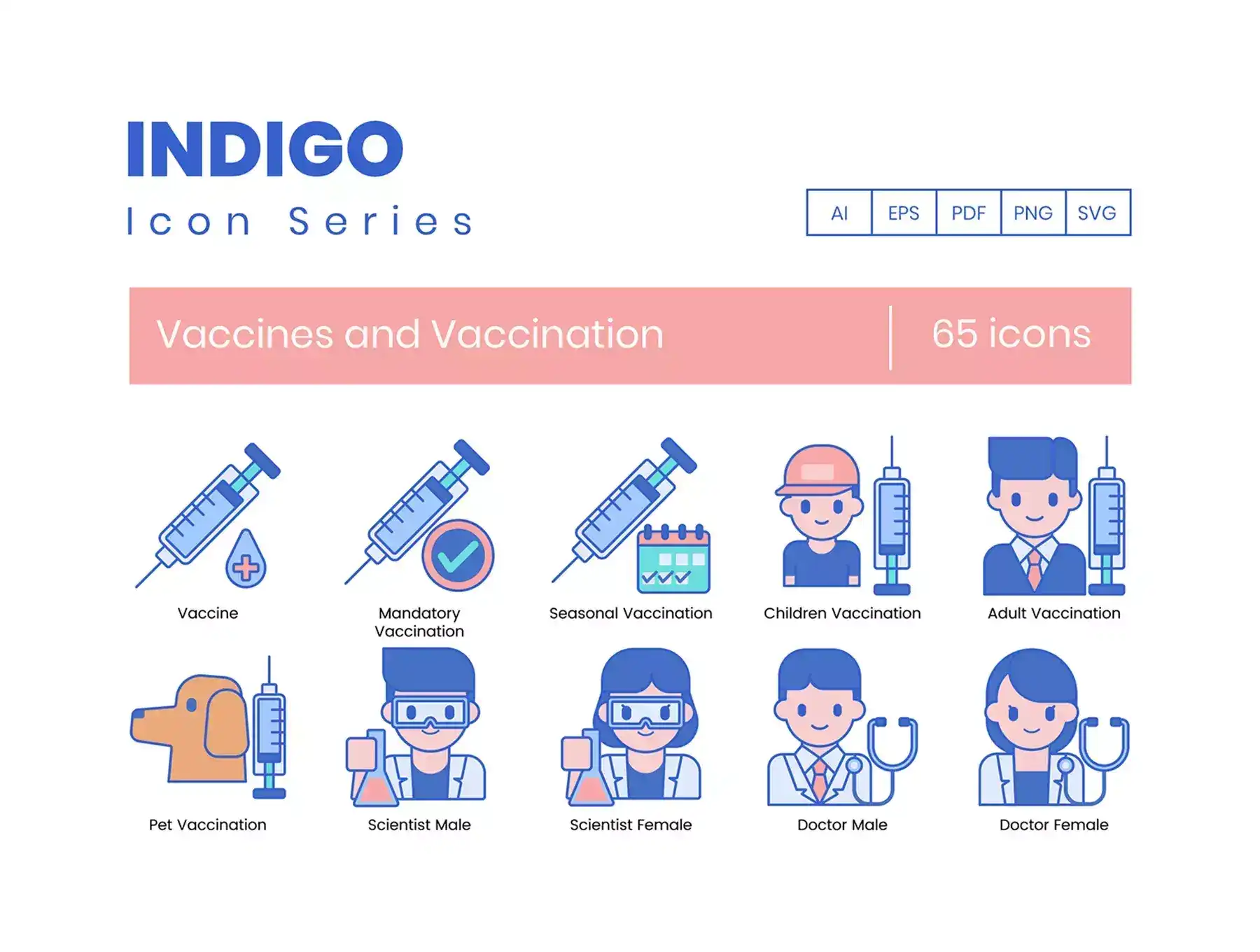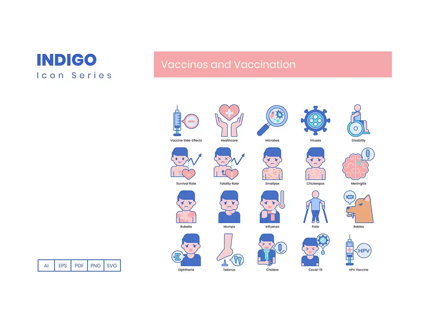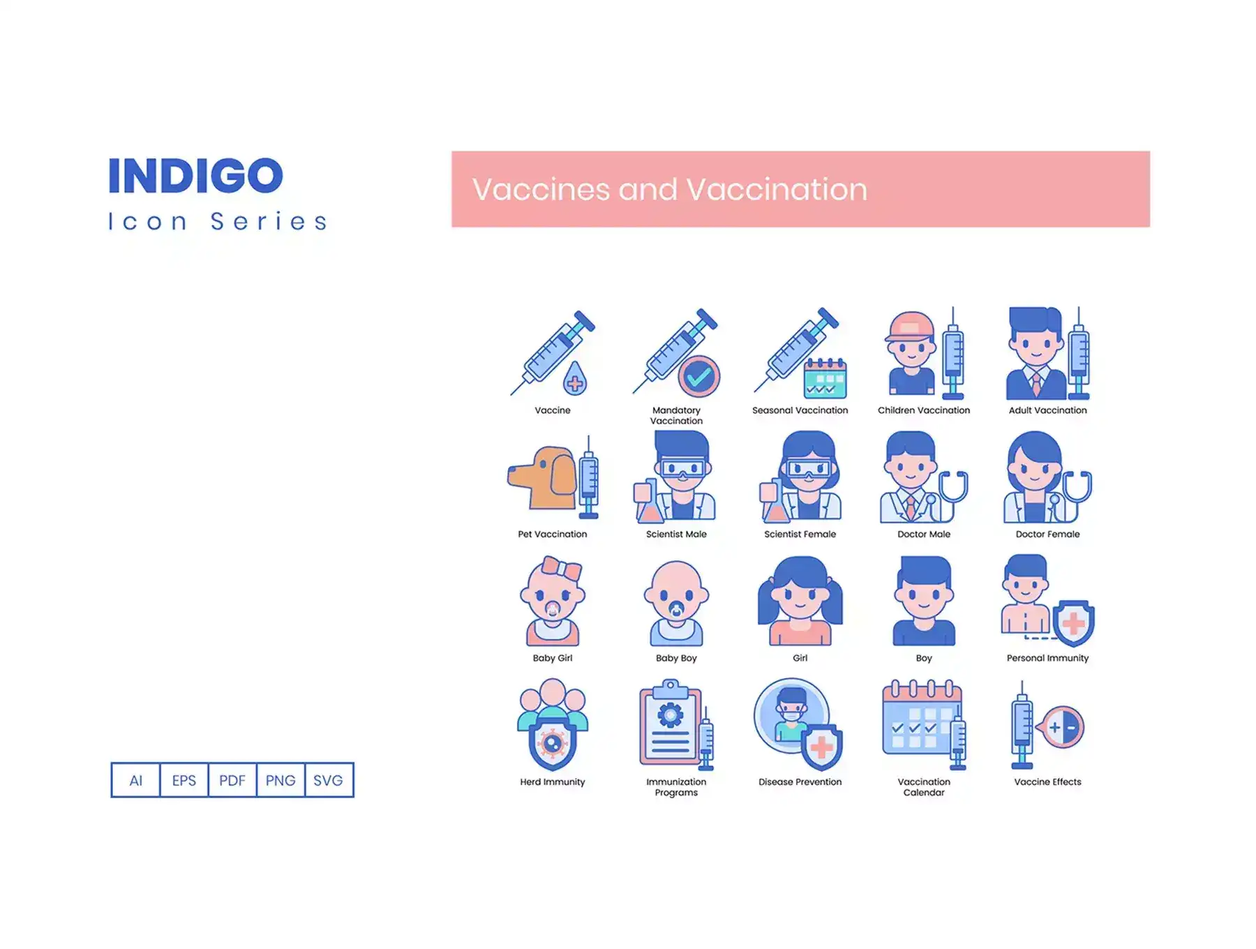 The idea of vaccines is that you get a biological agent that has the same characteristics to a microorganism that causes infectious diseases. They are often made from a weakened version of the biological agent. Sometimes the toxins or one of its surface proteins become the foundations of the agent. Vaccines are highly important to cure us from existing diseases without harming ourselves. So many diseases are actually preventable by the usage of vaccines. Humans are much healthier and have a longer life expectancy thanks to the vaccines that exist today! For your projects to succeed, it needs to be sustainable, and to do so you need to be able to communicate your ideas to your peers and stakeholders in the best way possible. These 65 Vaccines and Vaccination Icons will do the trick for you! With visuals that help you convey your ideas, your groundbreaking ideas will definitely be contagious to others!