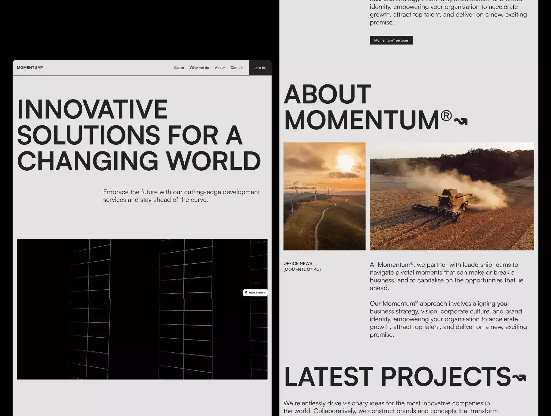 Introducing the perfect website template for agencies and businesses built exclusively for Framer - a powerful platform that combines design and development seamlessly. With our meticulously crafted template, you can elevate your online presence and showcase your brand in a captivating and professional manner.