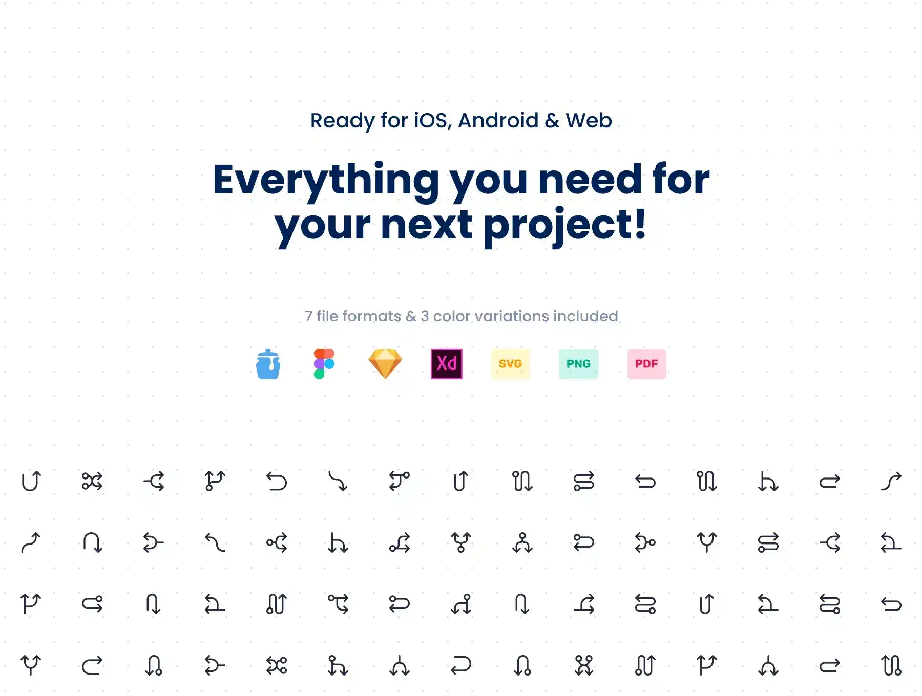 - Mobile ready: use perfect .svg and .pdf files right on your next iOS and Android projects.