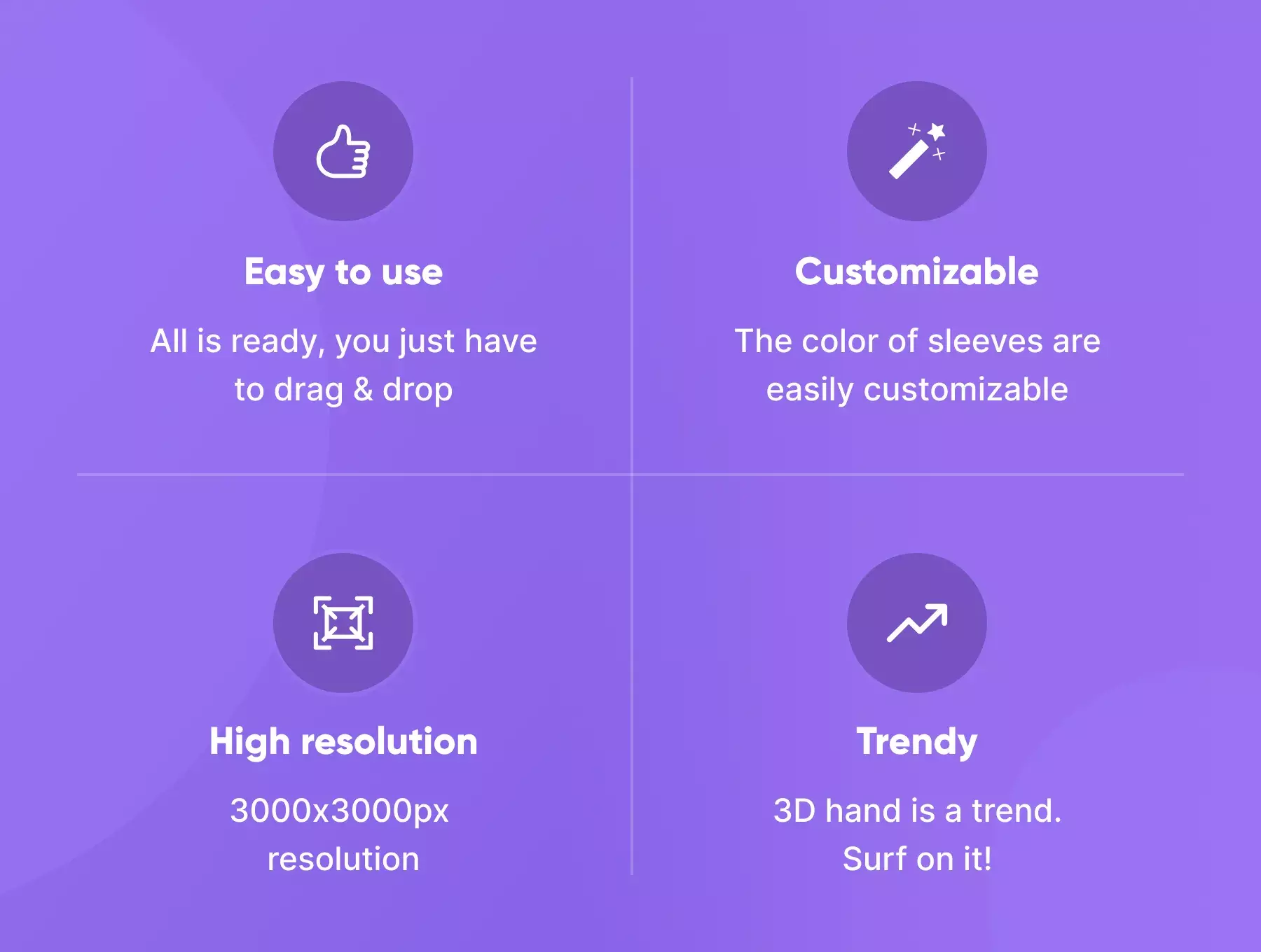Bring a human side to your next project with 3D hands created on Blender. Ideal for your Landing page, application, presentations, and other projects.