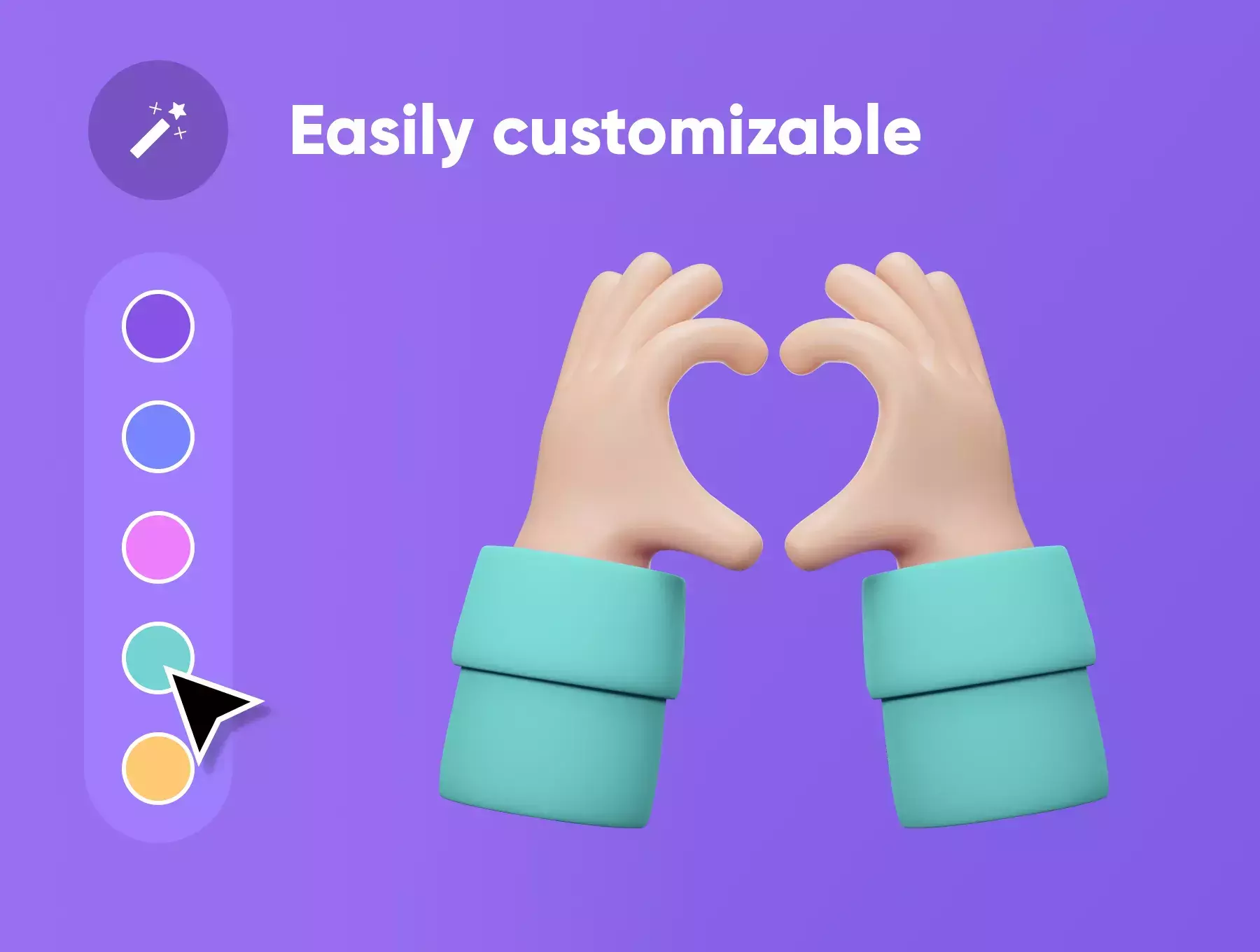 The pack includes 20 hand gestures. You can easily change the color to match your branding.