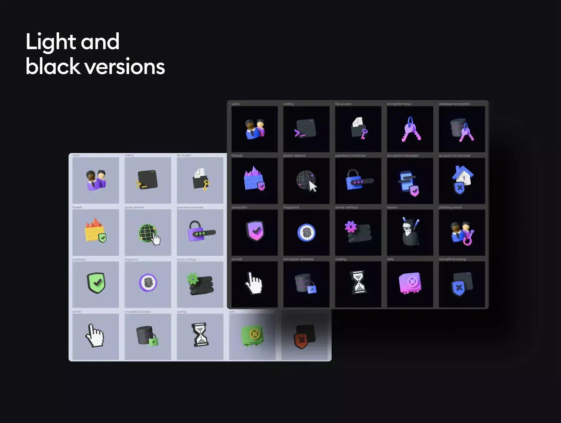 Collection of 49 security icons in light and black version. High resolution. All layers are connected to Color styles. So it's super easy to change colors.