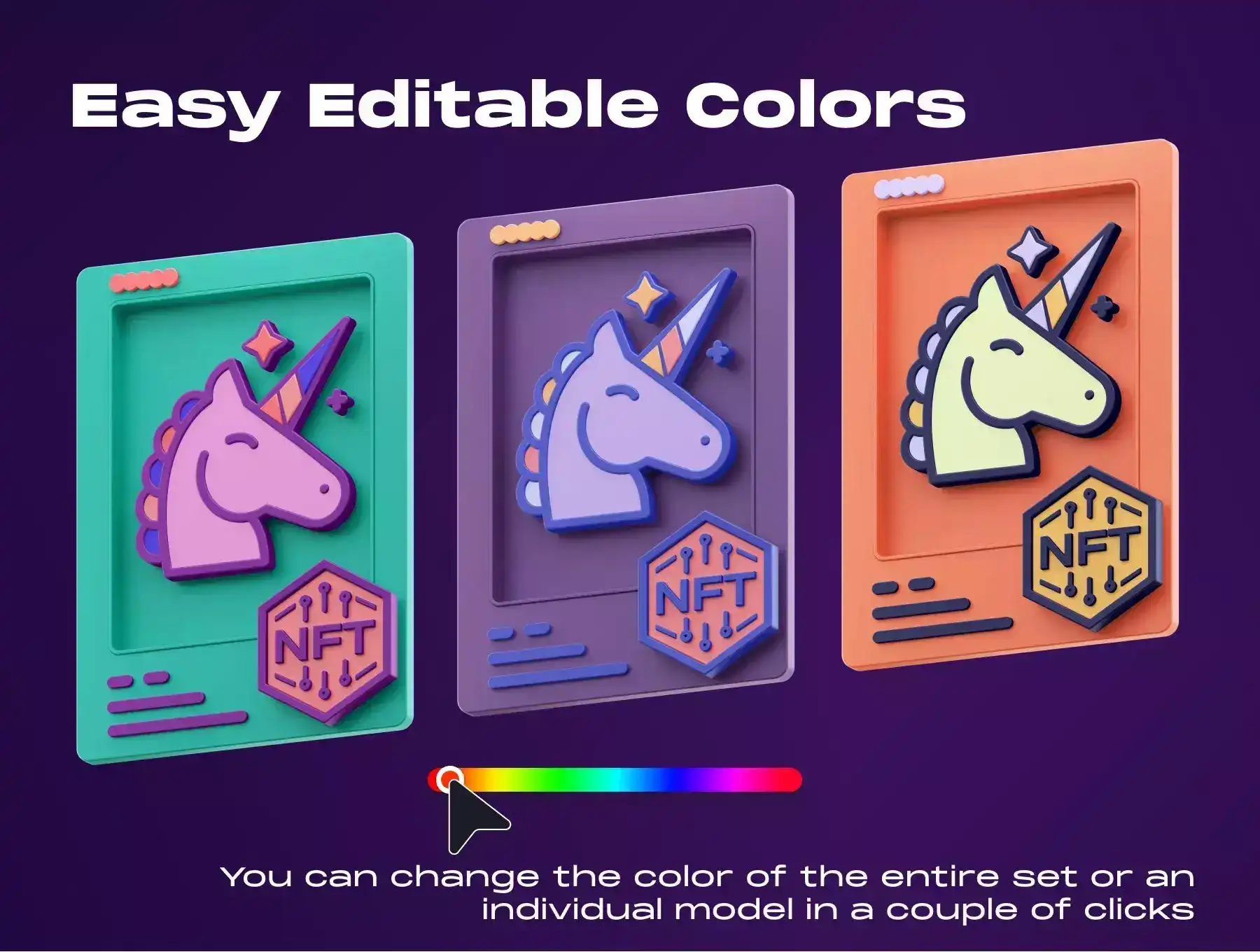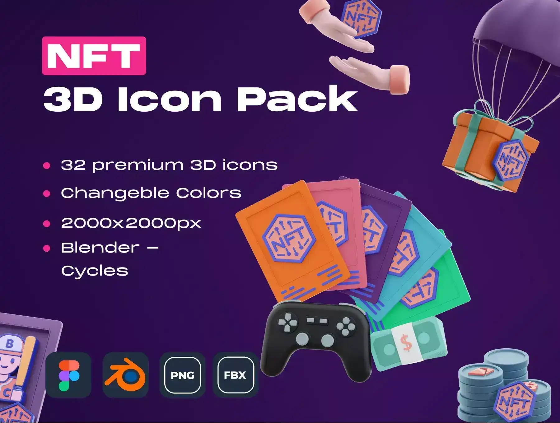 Commercially is a pack of custom 3D icons suitable for any products. This pack will perfectly complement the design of your app, presentation, website, etc. The kit includes icons such as: NFT, Play to Earn, Money, Crypto Investment, and more . Create stunning, unique projects with these hand crafted icons, easily editable in Figma, and fully customizable in Blender.