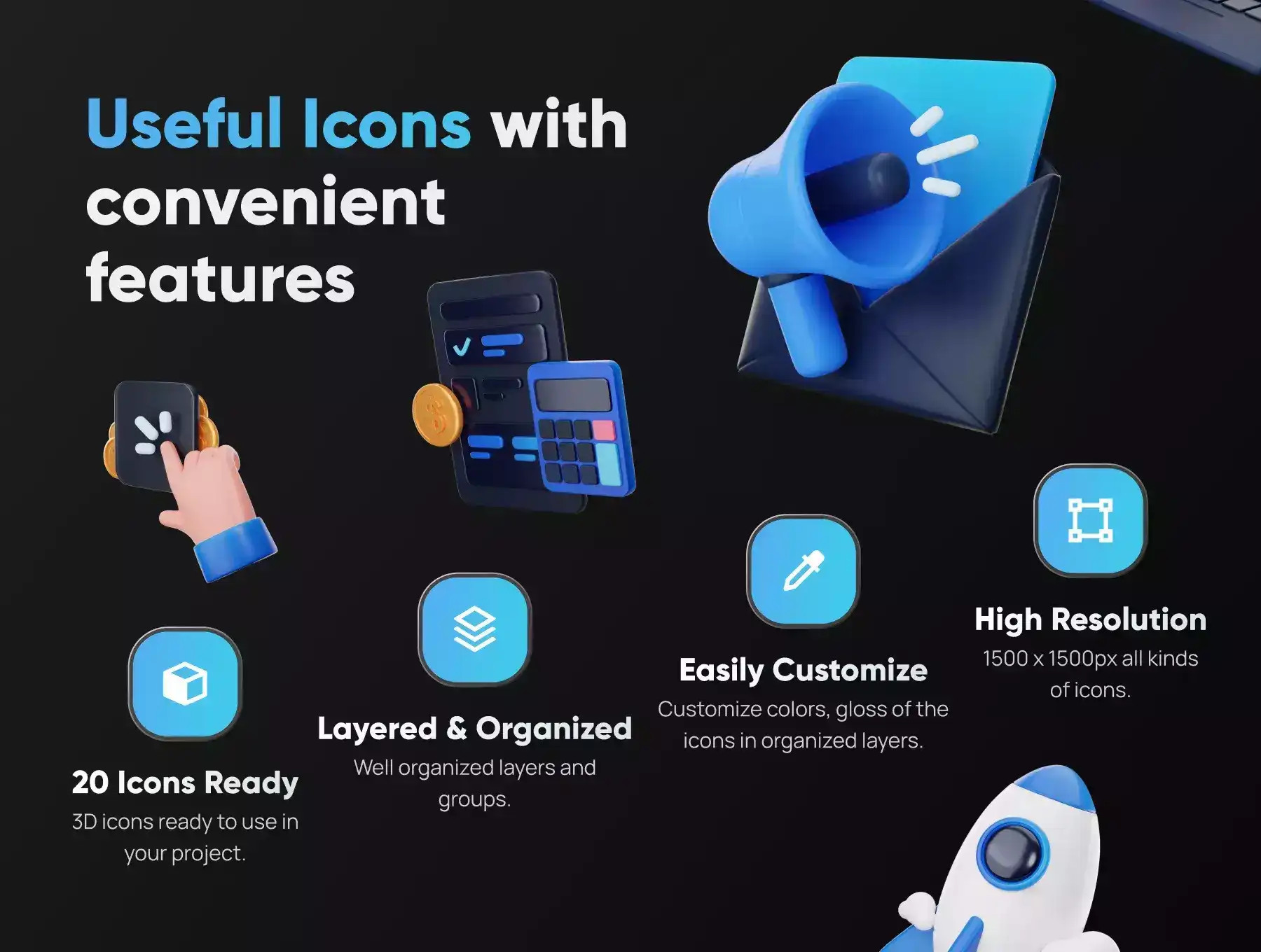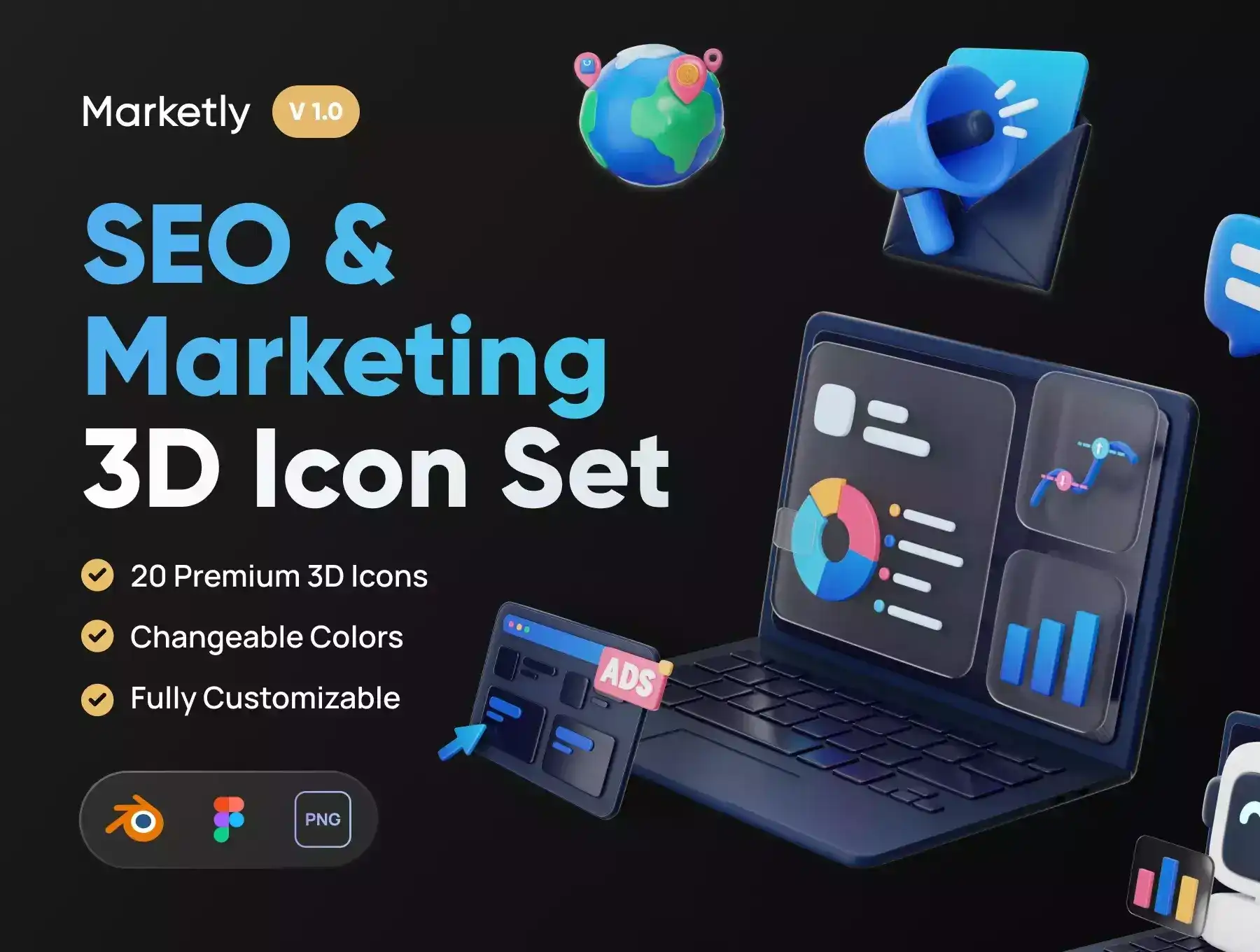 Marketly is a pack of custom 3D icons suitable for SEO & Marketing Niche. Make your next product and project more stunning with 3D Icons.
