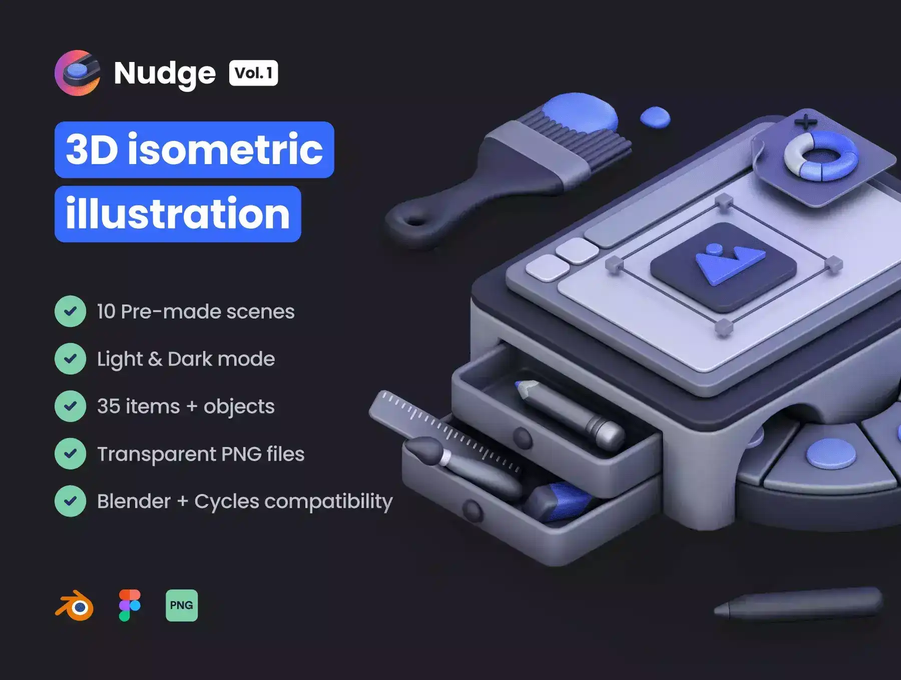 File formats included: Blender, Figma, and PNG.