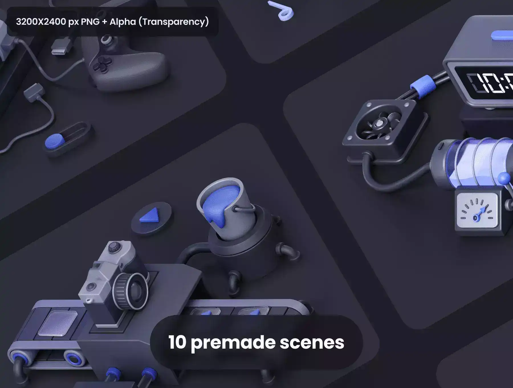 This awesome pack includes 10 premade scenes in light and dark mode.