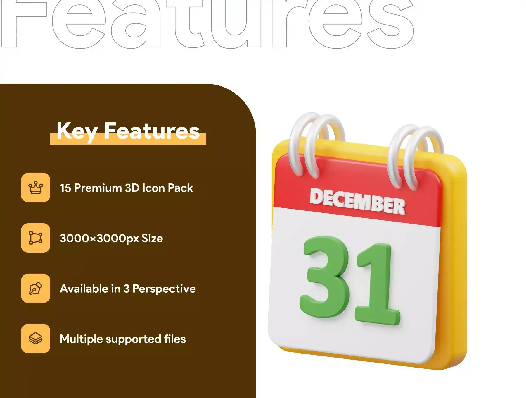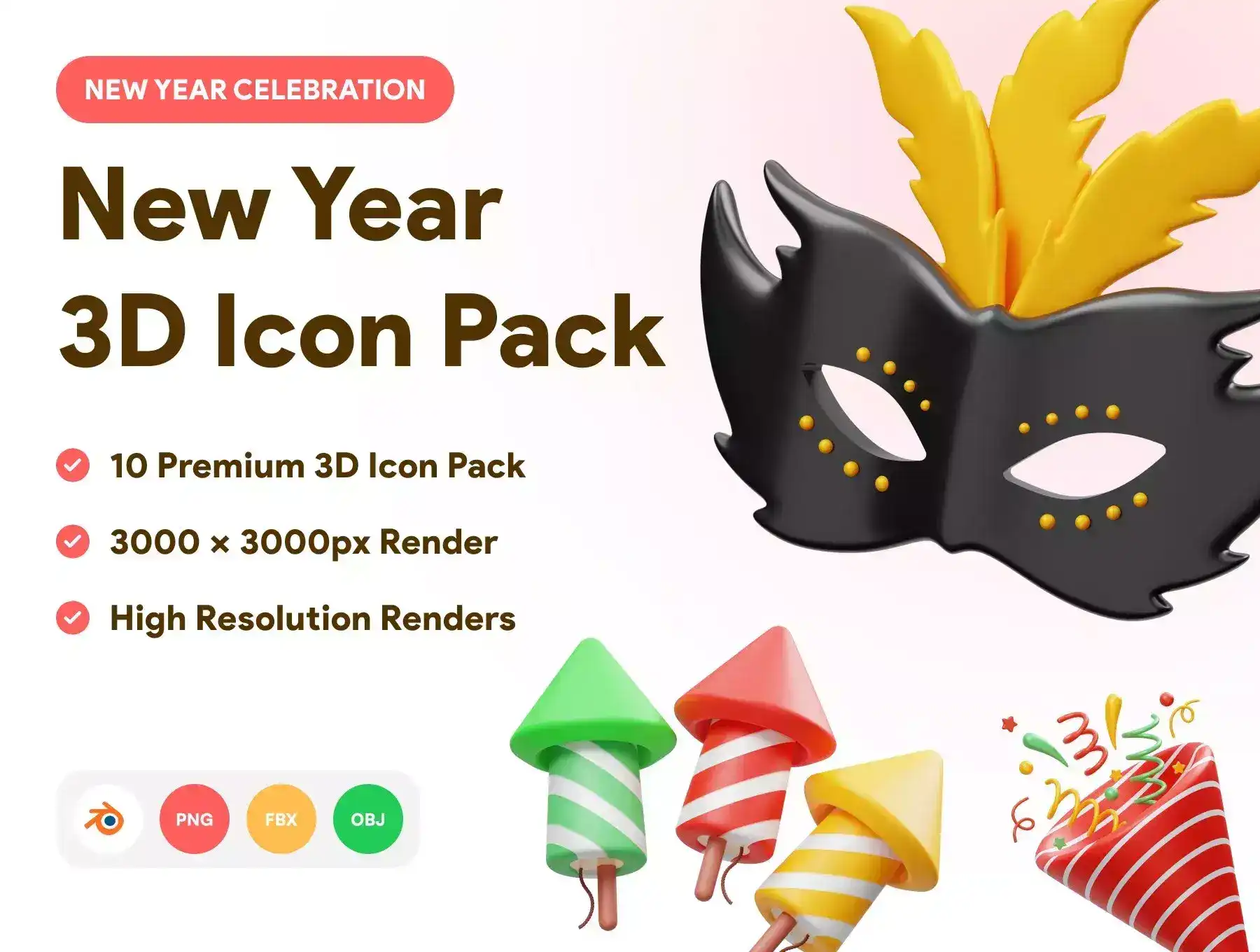 15 ready-made 3D New Year Celebration Icon file objects for Websites, Mobile Apps, and more. Enhance your designs with 3D Assets.