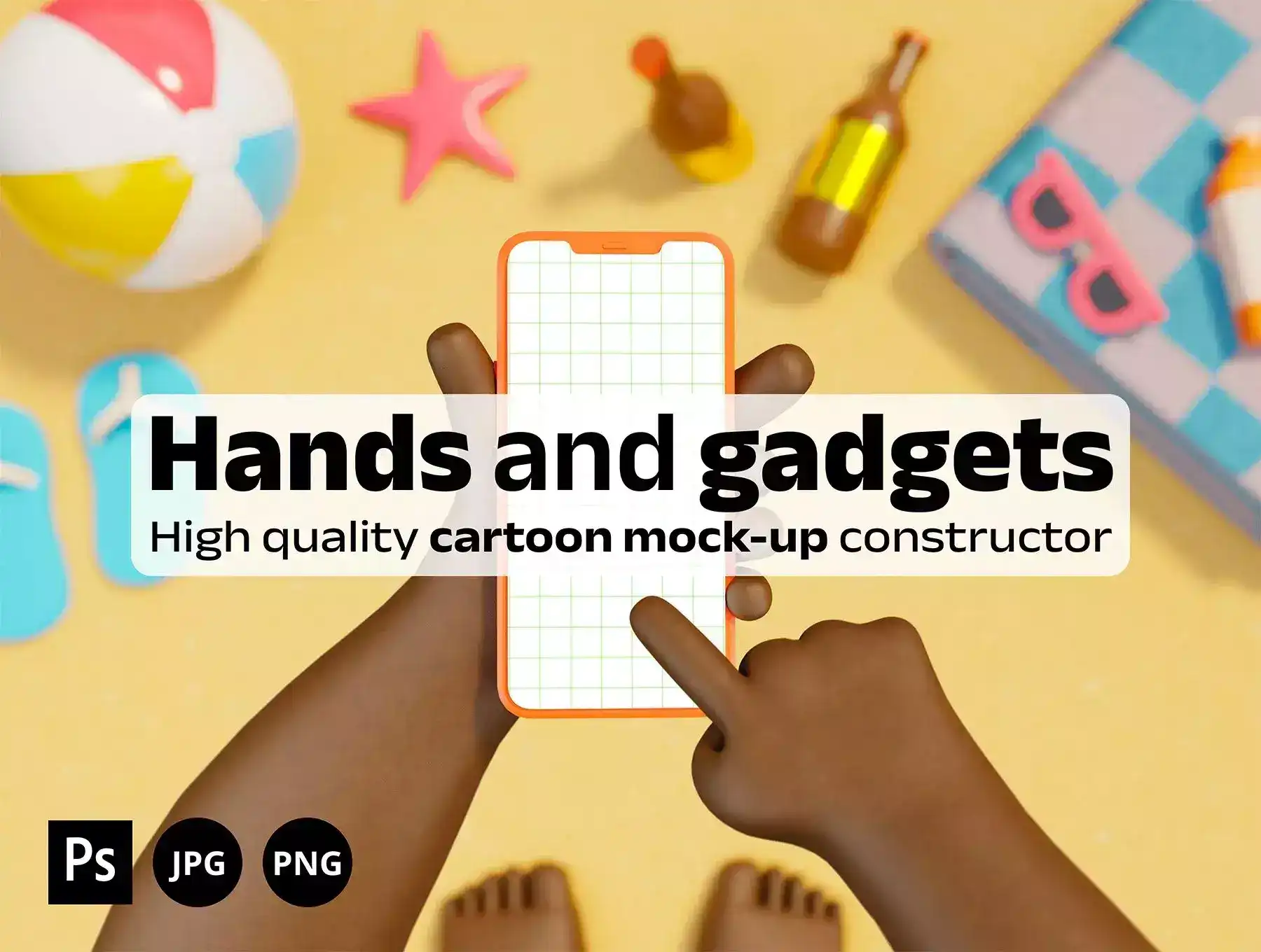 Hands and gadgets cartoon 3D style mock-up constructor