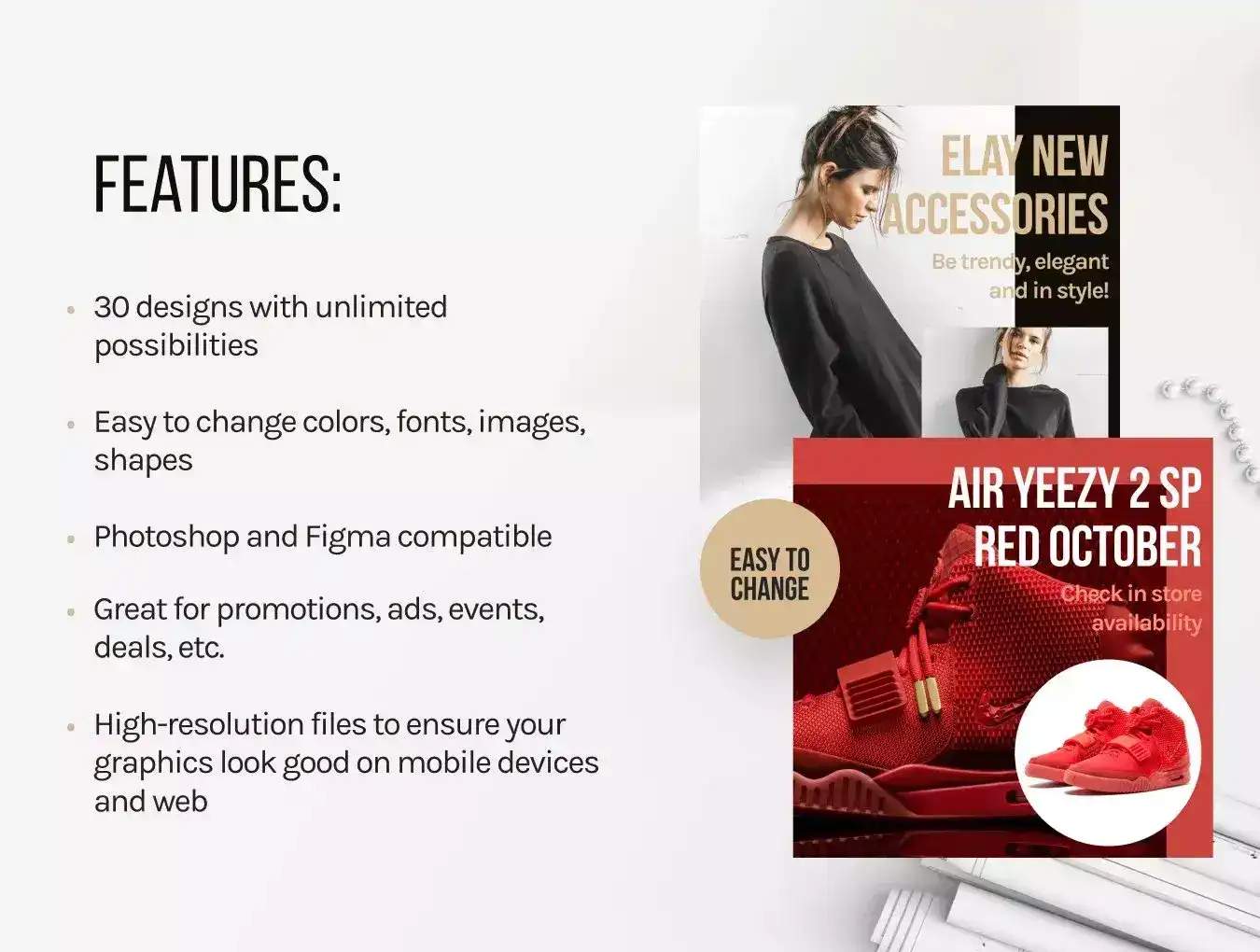 All of these templates are layered and fully organized, save your time change everything from texts to images in just a few clicks. Excellent for promotions, Instagram ads, blog design, events, sales, etc.