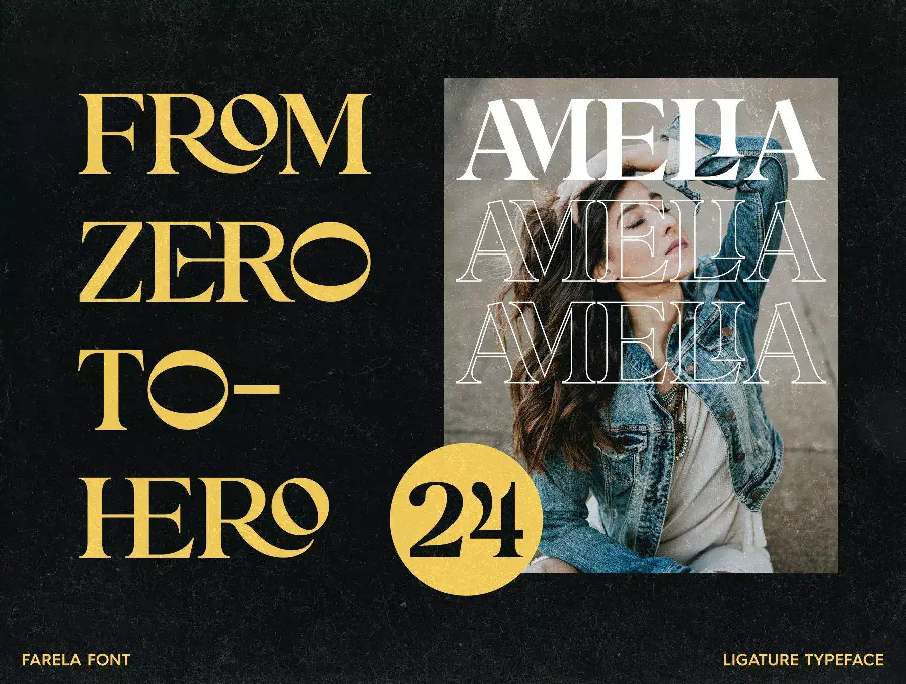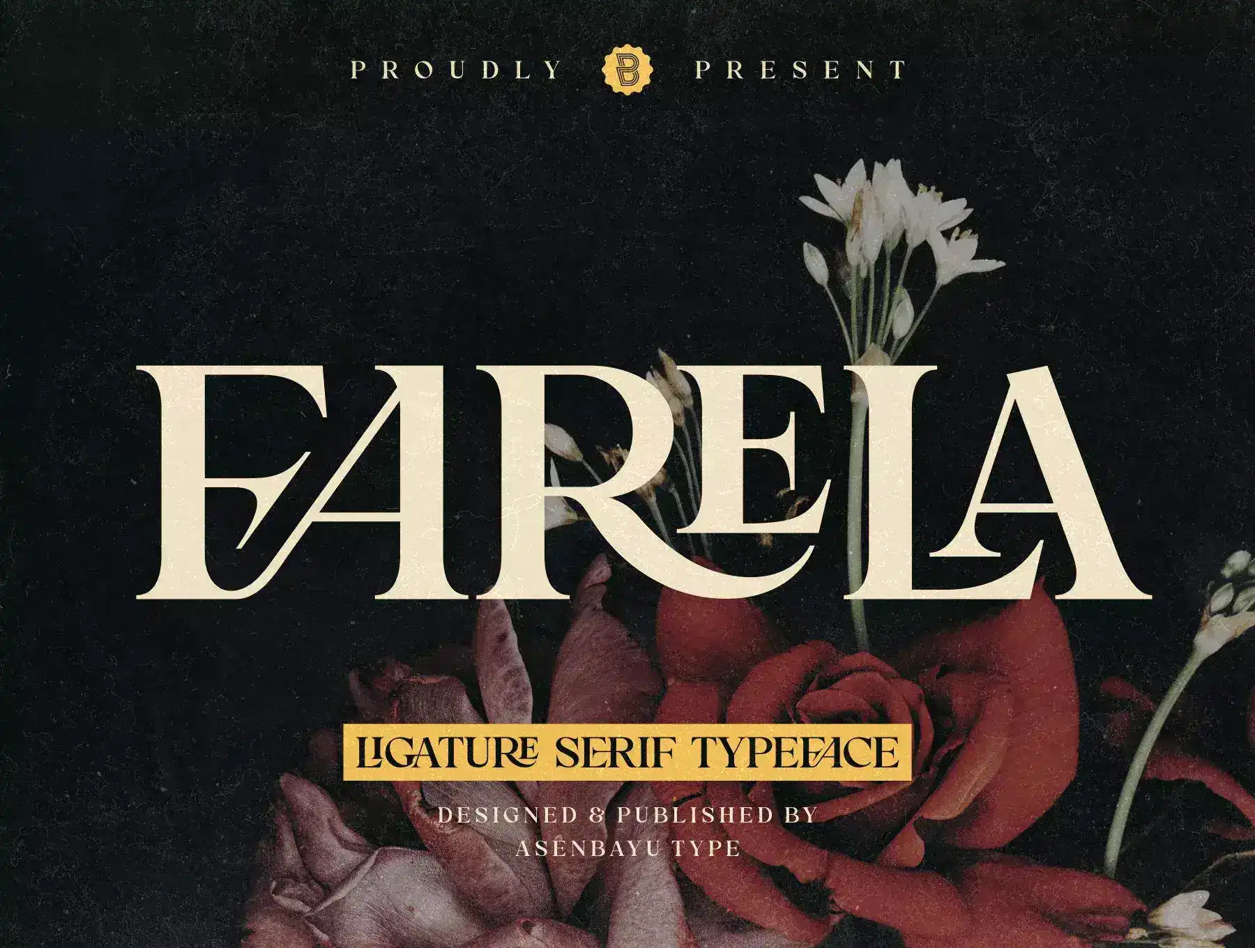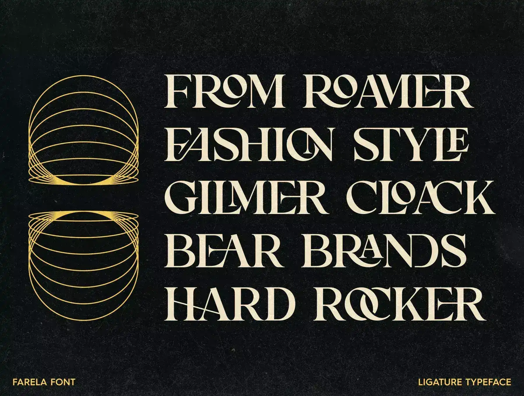 The Farela font is a serif ligature font that has an attractive elegant appearance. You can use this font in vintage, classic, and retro designs. This font gives a beautiful, classy and luxurious feel to your designs. This font is perfect for projects such as logos, branding, fashion, magazines, labels, posters, album covers and many more.